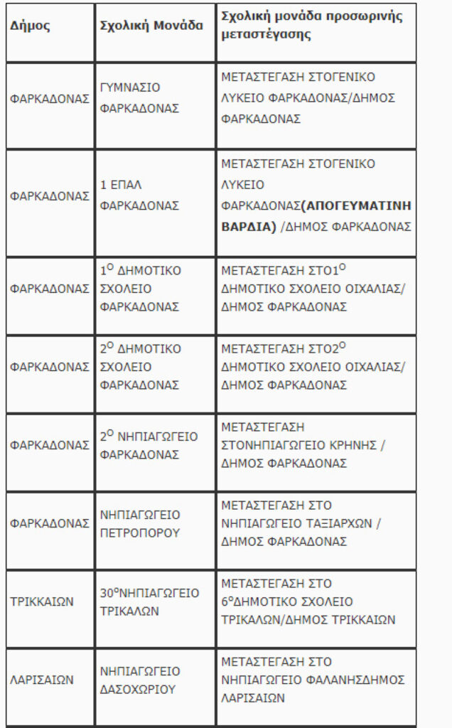 Η μεταφορά των μαθητών των παραπάνω σχολείων έχει προβλεφθεί και θα καλυφθεί από την Περιφέρεια Θεσσαλίας.