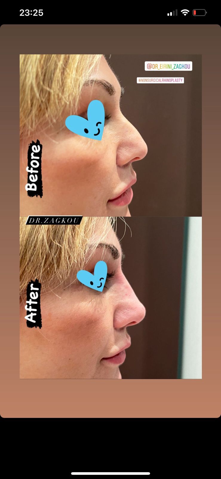 Πολλοί, πλέον, στρέφονται σε μη χειρουργικές επεμβάσεις μύτης αφού μία μη χειρουργική επέμβαση μύτης είναι ακριβώς όπως ακούγεται – μια μεταμόρφωση που πραγματοποιείται χωρίς χειρουργείο. Αντίθετα, εγχέονται πληρωτικά υλικά, με πιο συνηθισμένα από αυτά τα υαλουρονικά οξέα, όπου βελτιώνουν την αισθητική εικόνα της μύτης και διορθώνουν τη δυσμορφία αυτής. Το ποσοστό βελτίωσης μπορεί να είναι από 70 ως και 100%, δηλαδή να επιλύσει πλήρως το οποιοδήποτε πρόβλημα τυχόν δυσμορφίας.