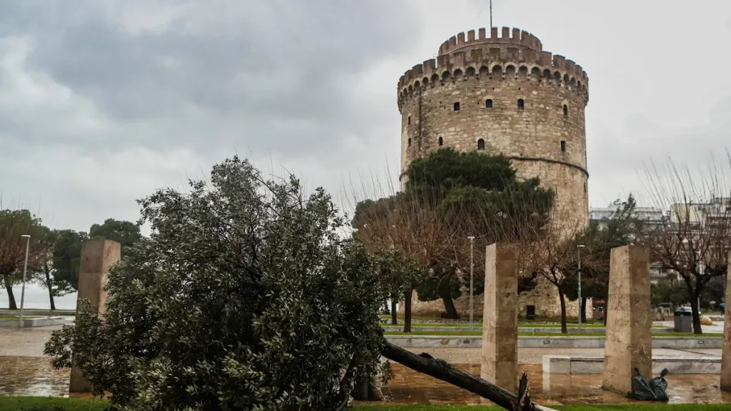 Στην Πλατεία του Λευκού Πύργου στη Θεσσαλονίκη δέντρο ξεριζώθηκε και έπεσε, χωρίς ευτυχώς να έχει αναφερθεί κάποιος τραυματισμός.
