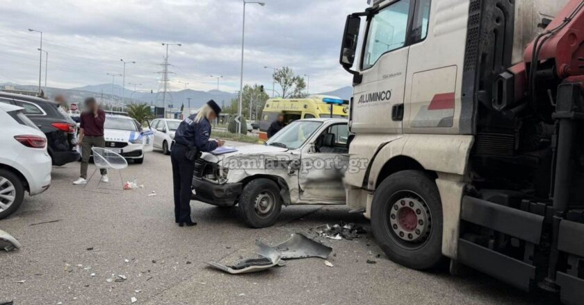 Αγροτικό «καρφώθηκε» σε νταλίκα (ΒΙΝΤΕΟ)