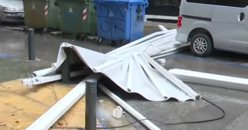Γλίτωσαν από τύχη: Τέντα έπεσε από τον 8ο όροφο στο δρόμο!