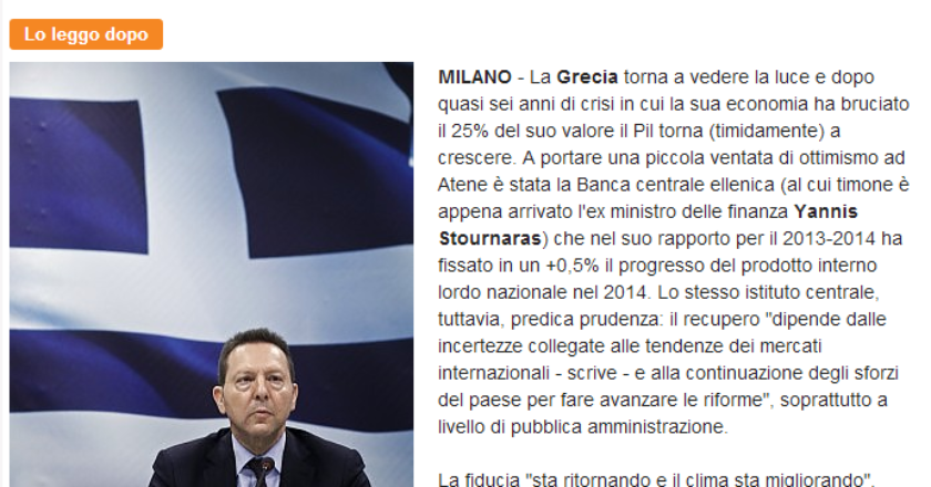 ΟΙΚΟΝΟΜΙΑ Έλληνες: Οι πιο απαισιόδοξοι Ευρωπαίοι.Το 56% πιστεύει πως τους επόμενους μήνες, υπάρχει ο κίνδυνος να πέσει σε καθεστώς ακραίας φτώχειας. 25 Ιουλίου, 2014, 4:44 μμ25 Ιουλίου, 2014