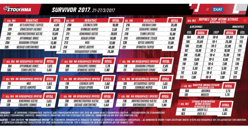 Sports ΠΑΜΕ ΣΤΟΙΧΗΜΑ: Περισσότερα από 16 εκατομμύρια ευρώ σε κέρδη μοίρασε την προηγούμενη εβδομάδα 23 Μαρτίου, 2017, 5:39 μμ23 Μαρτίου, 2017
