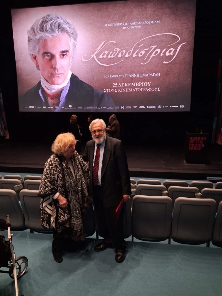 Η Υπουργός Πολιτισμού και Αθλητισμού, Λίνα Μενδώνη, βρέθηκε στο πλευρό του Γιάννη Σμαραγδή για την επίσημη προβολή της ταινίας, όπως αναφέρει και η επίσημη ανάρτηση του ΥΠΠΟ: «Η #ΥΠΠΟ Λίνα Μενδώνη με τον Γιάννη Σμαραγδή στην παγκόσμια πρεμιέρα της ταινίας «Καποδίστριας», στο Museum of the Moving Image @movingimagenyc, στην #Αστόρια των ΗΠΑ.»