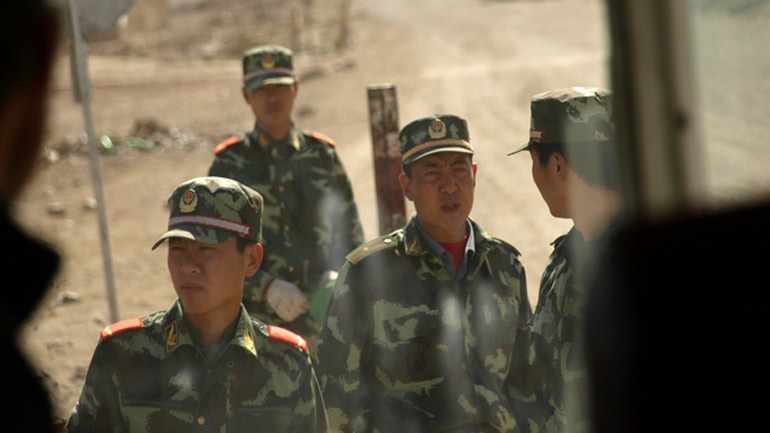 Ο δημοσιογράφος του Γαλλικού Πρακτορείου είδε τους άνδρες να κινούνται κατά ομάδες πεζή και άλλους με μοτοσικλέτες έξω από το στάδιο, που απέχει λιγότερο από 7 χιλιόμετρα από τα σύνορα με το Χονγκ Κονγκ. Δεν είναι σαφής ο λόγος της παρουσίας τους στο σημείο αυτό.