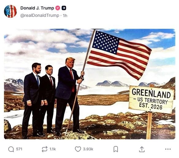 Ο Ντόναλντ Τραμπ προκάλεσε αντιδράσεις με ανάρτηση που δείχνει -μέσω AI-generated εικόνας- τον ίδιο να φυτεύει αμερικανική σημαία στη Γροιλανδία.