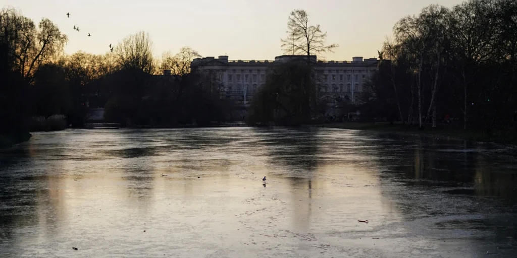 Ιδιαίτερη εντύπωση προκαλούν οι εικόνες από την παγωμένη επιφάνεια της λίμνης του St James’s Park, δίπλα στο Παλάτι του Μπάκιγχαμ, στο Λονδίνο.