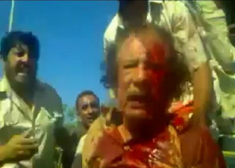 Στο βίντεο που τραβήχτηκε με κινητό τηλέφωνο, προφανώς από κάποιον αντικαθεστωτικό, φαίνεται ο καταματωμένος Καντάφι να έχει φορτωθεί σε ένα ανοικτό ημιφορτηγό, λίγο μετά την ανακάλυψή του σε έναν αγωγό νερού. Σε ένα σημείο μέσα στην απίστευτη οχλαγωγία, ο Καντάφι ακούγεται να παρακαλά για τη ζωή του.