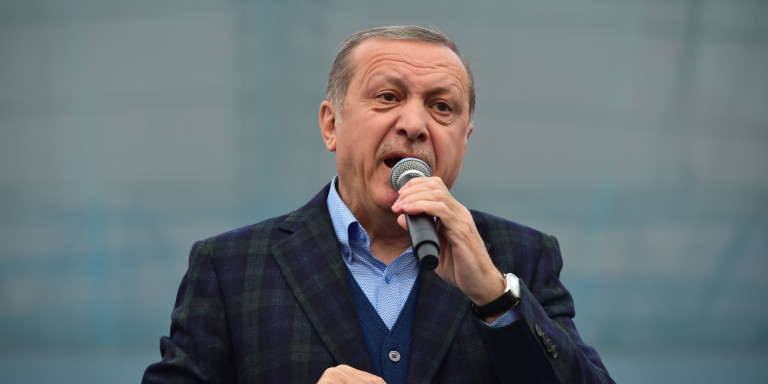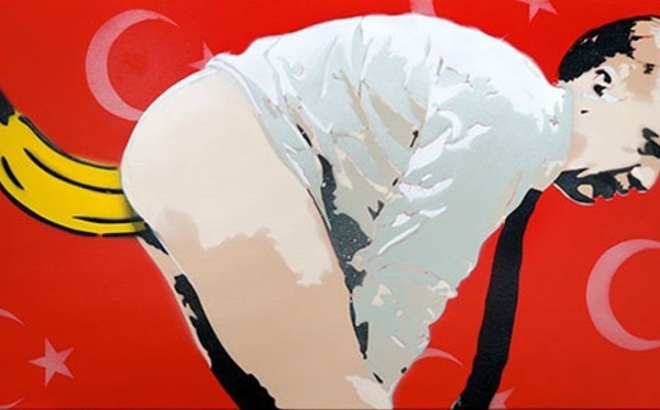 Υπό τον τίτλο “Τούρκος δικτάτορας”, το έργο του καλλιτέχνη προκαλεί αφού ο Ρετζέπ Ταγίπ Ερντογάν απεικονίζεται σκυμμένος, γυμνός από τη μέση και πάνω, με μία μπανάνα στο πίσω μέρος.