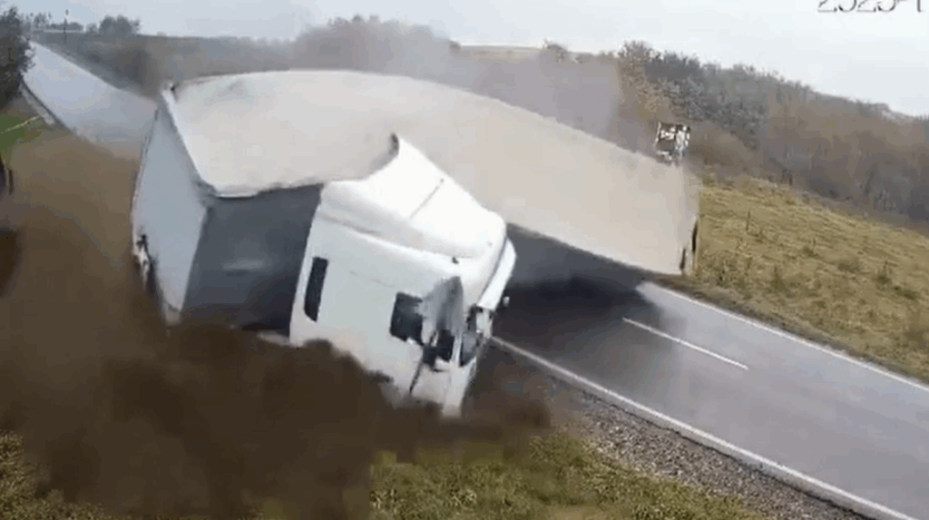 Όπως φαίνεται στο βίντεο από κάμερα ασφαλείας στο θανατηφόρο τροχαίο ενεπλάκησαν ένα φορτηγό και ένα αυτοκίνητο με τον οδηγό του πρώτου να χάνει τον έλεγχο του μεγάλου οχήματος που δίπλωσε στον δρόμο με αποτέλεσμα να συνθλίψει το ΙΧ που βρισκόταν στο αντίθετο ρεύμα κυκλοφορίας.