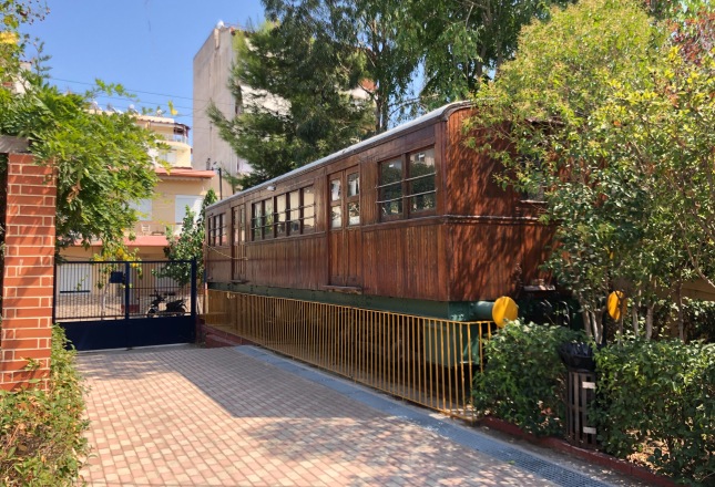 Στην είσοδο του σχολείου θα εντυπωσιαστείτε. Ένα παλιό ξύλινο βαγόνι των Ηλεκτρικών Σιδηροδρόμων. Μέσα σε αυτό η βιβλιοθήκη του σχολείου. Φτιαγμένη με μεράκι και ώρες προσωπικής δουλειάς. Ο Μάριος είναι ο υπεύθυνος της βιβλιοθήκης και μας την παρουσιάζει.