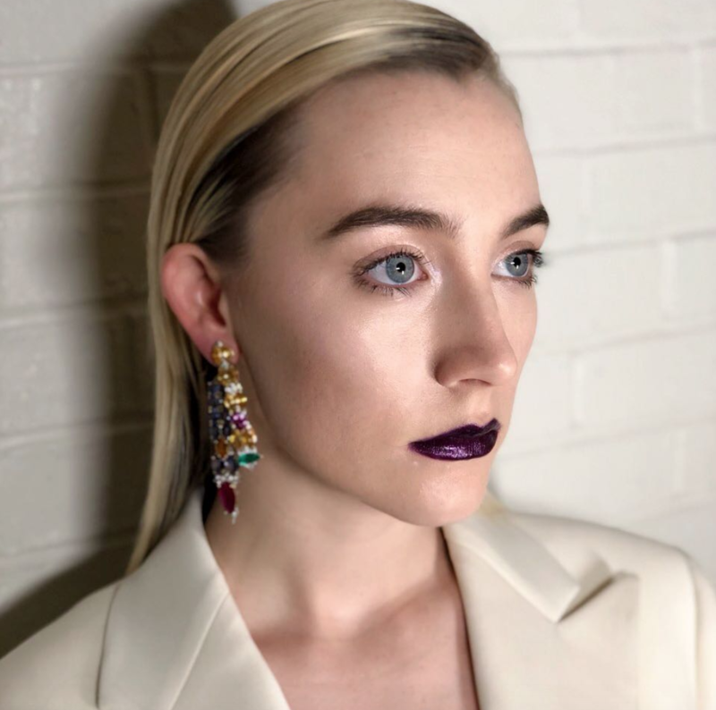 Ένα σκούρο μοβ κραγιόν με glossy υφή σαν της Saoirse Ronan θα κάνει πιο cool κάθε εμφάνιση.