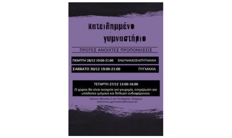 Στις 28 Δεκεμβρίου θα πραγματοποιηθεί η πρώτη προπόνηση στο γυμναστήριο στα Εξάρχεια το οποίο τελεί υπό κατάληψη.