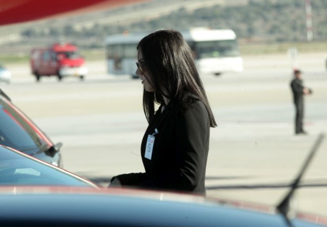 Μία άλλη αστυνομικός με μαύρα ρούχα και μαύρα μαλλιά τριγυρνούσε στον χώρο της προσγείωσης, ελέγχοντας αν τα πάντα είναι στην εντέλεια.