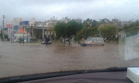 Η λεωφόρος Πάρνηθος έχει μετατραπεί σε… ποτάμι, ενώ η στάθμη των νερών ανέρχεται σε 5-10 εκατοστά.