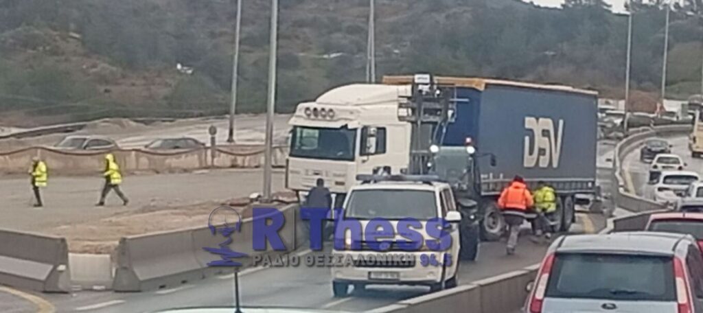 Νταλίκα «δίπλωσε» στον Περιφερειακό της Θεσσαλονίκης, προκαλώντας κυκλοφοριακή συμφόρηση.