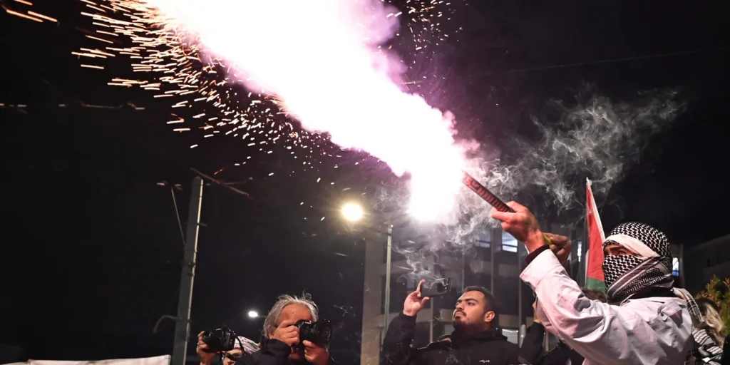 Επεισόδια ξεκίνησαν μεμονωμένοι διαδηλωτές το βράδυ της Τρίτης κοντά στην πρεσβεία του Ισραήλ, όπου κατέληξε πορεία υπέρ της Παλαιστίνης.