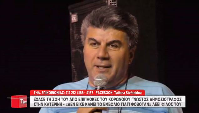 «Από όσο γνωρίζω, δεν είχε κάνει το εμβόλιο κατά του κορονοϊού, βέβαια σε καμία περίπτωση δεν ήταν αρνητής. Από όσο γνωρίζω από προσωπικές συζητήσεις φοβόταν να το προχωρήσει» αποκάλυψε φίλος του μιλώντας στον ALPHA.