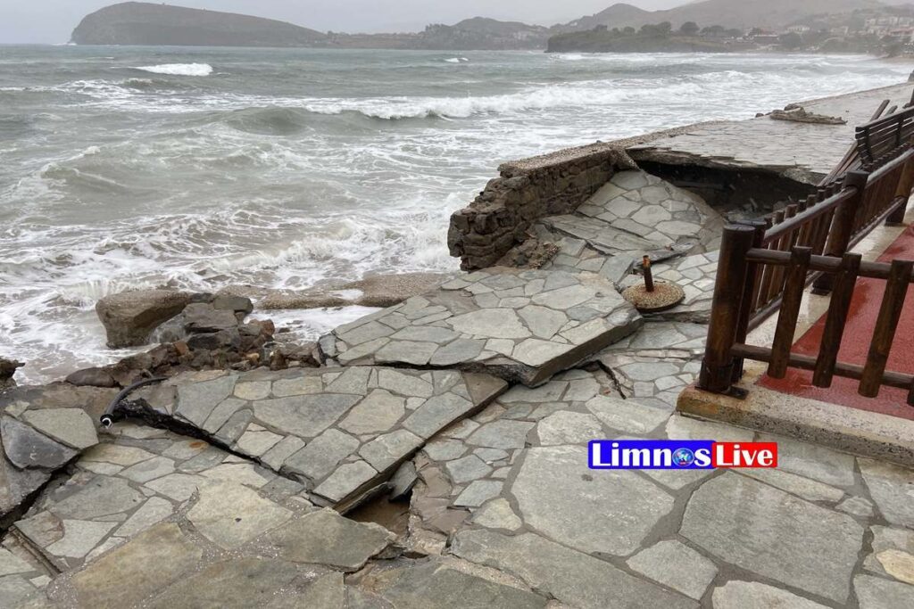 Οι σφοδροί άνεμοι που ξεπέρασαν τα 8 μποφόρ, προκάλεσαν ζημιά σε όλο το μέτωπο της παραλιακής στη Μύρινα κατά την διάρκεια της νύχτας.
