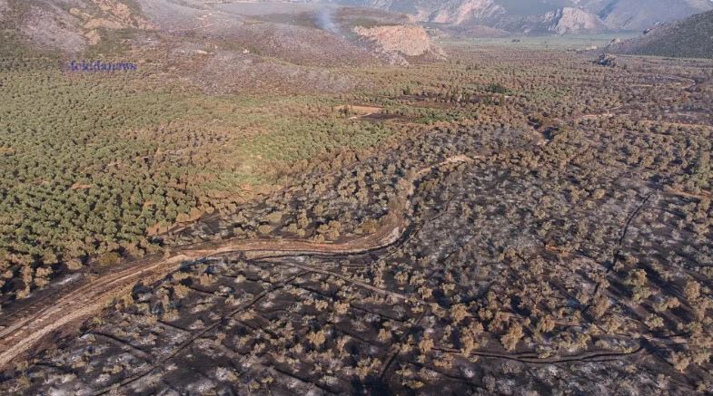 Εικόνες καταστροφής αποτυπώνονται σε βίντεο από drone που δείχνει τις εκτεταμένες ζημιές στον Παραδοσιακό Ελαιώνα της Άμφισσας, από τη μεγάλη φωτιά της Δευτέρας.