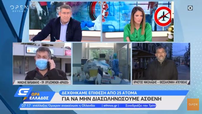 «Δεχτήκαμε επίθεση από 25 άτομα για να μην διασωληνώσουμε ασθενή» καταγγέλλει στην εκπομπή «Ώρα Ελλάδος» ο πρόεδρος των εργαζομένων στο Θριάσιο.