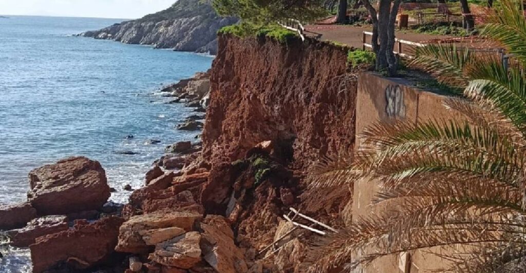 Η καθίζηση έχει εντοπιστεί σε παραθαλάσσιο τμήμα, όπου σημαντικές ποσότητες χώματος και βραχωδών υλικών αποκολλήθηκαν και κατέληξαν στην ακτογραμμή.