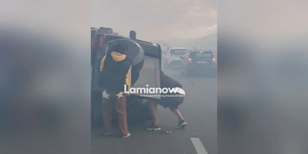 Ο οδηγός και η συνεπιβάτης, σύμφωνα με τις πρώτες πληροφορίες με καταγωγή από την κεντρική Ασία, κατάφεραν να βγουν από το όχημα με την βοήθεια διερχομένων οδηγών.