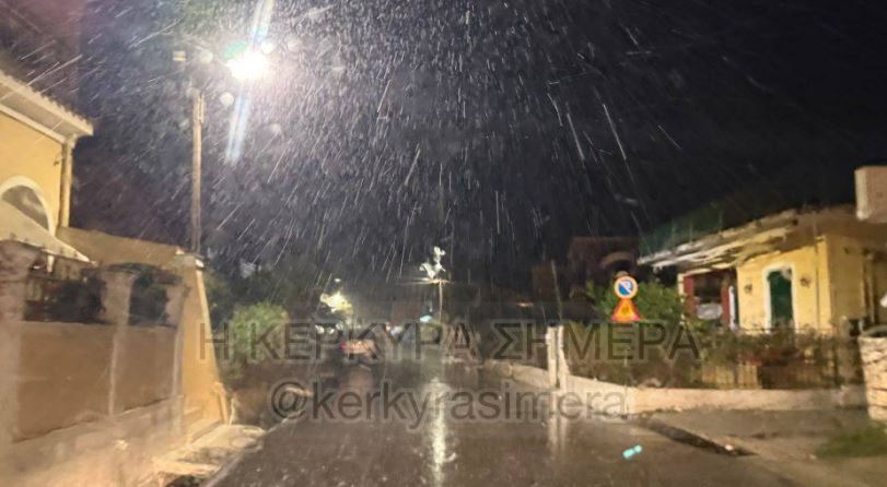 Έντονη ήταν το βράδυ της Τετάρτης η βροχόπτωση στην Κέρκυρα.