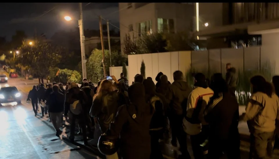 Μέλη της αναρχικής συλλογικότητας Ρουβίκωνας πραγματοποίησαν διαμαρτυρία έξω από το σπίτι της υπουργού Εργασίας, Νίκης Κεραμέως, στο Ψυχικό, ενάντια στην πολιτική της για τους χώρους εργασίας.