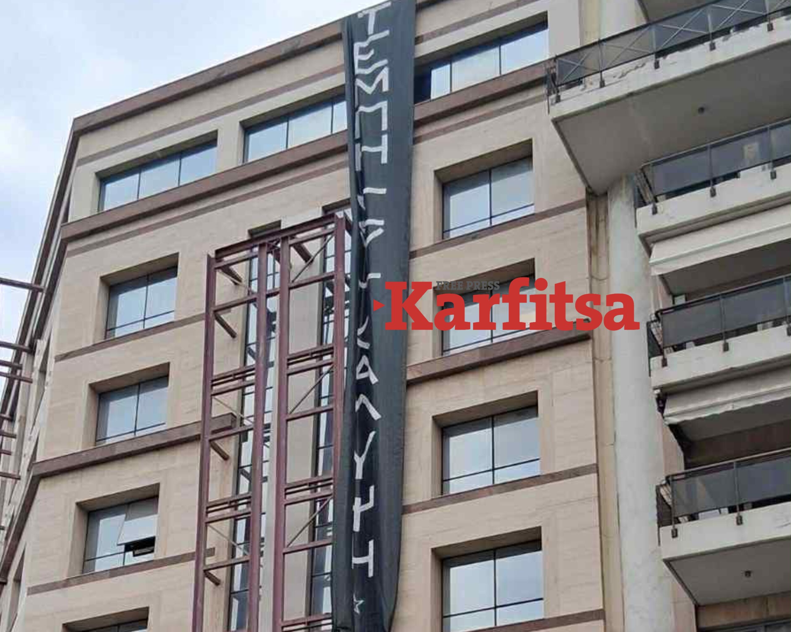 Μέλη του Ρουβίκωνα ανήρτησαν πανό και πέταξαν τρικάκια τo πρωί της Τετάρτης στα γραφεία της ΕΡΓΟΣΕ στη Θεσσαλονίκη.