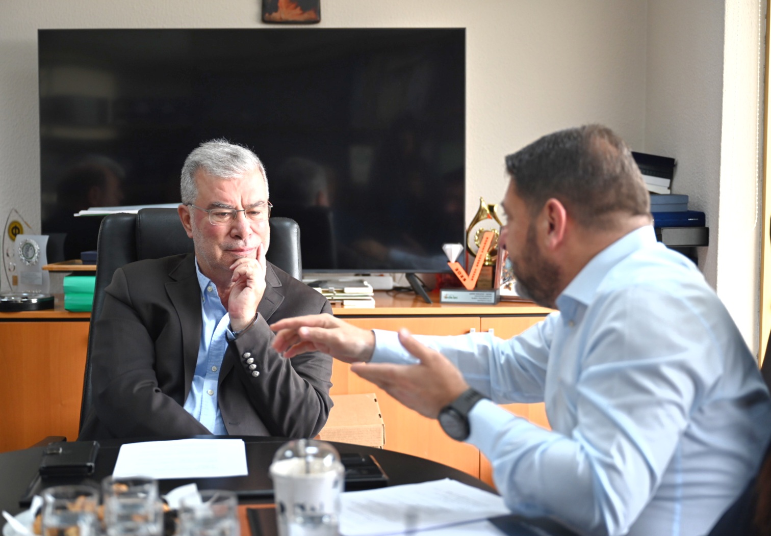 Κατά την επίσκεψή του ο κ. Χαρδαλιάς πραγματοποίησε σύσκεψη εργασίας με τον Δήμαρχο Ανδρέα Ευθυμίου, στο δημαρχιακό μέγαρο, όπου τέθηκαν επί τάπητος όλα τα μεγάλα έργα που υλοποιούνται στην περιοχή με χρηματοδότηση της Περιφέρειας Αττικής.