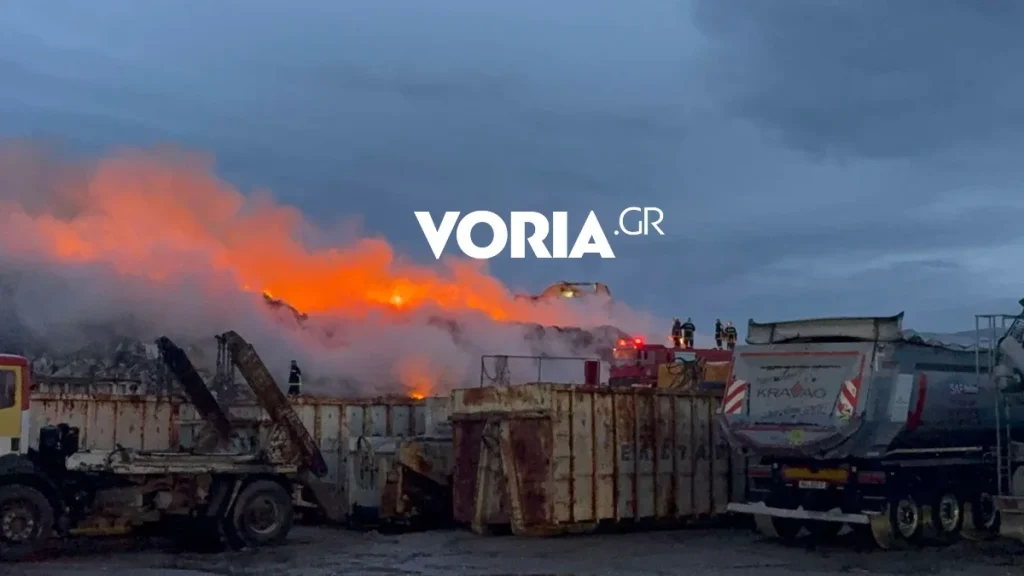 Στις φλόγες εργοστάσιο ανακύκλωσης στα Διαβατά (ΒΙΝΤΕΟ)