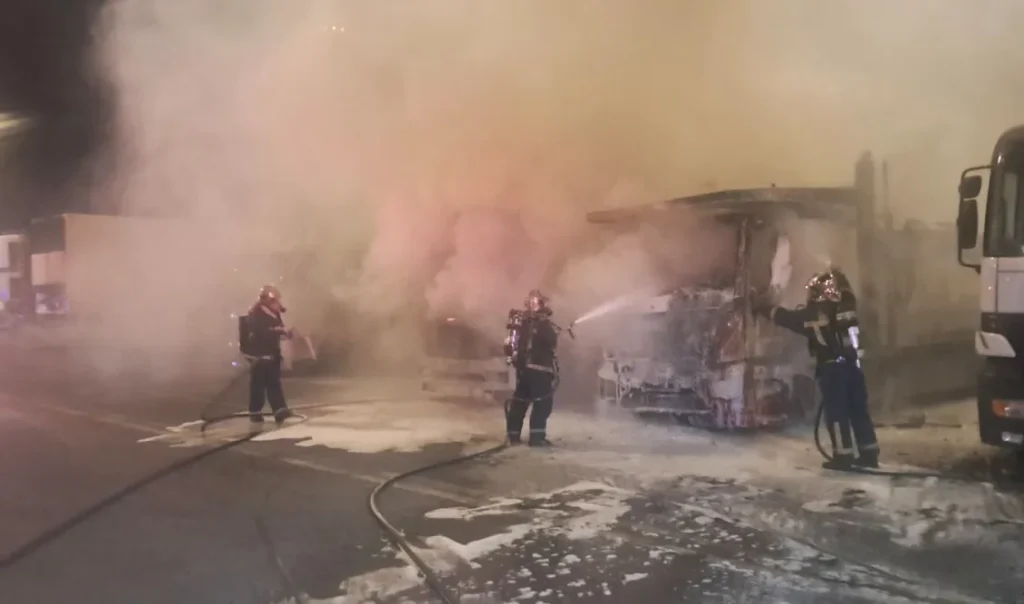 Η φωτιά τέθηκε άμεσα υπό έλεγχο, χωρίς να επεκταθεί σε διπλανές νταλίκες.