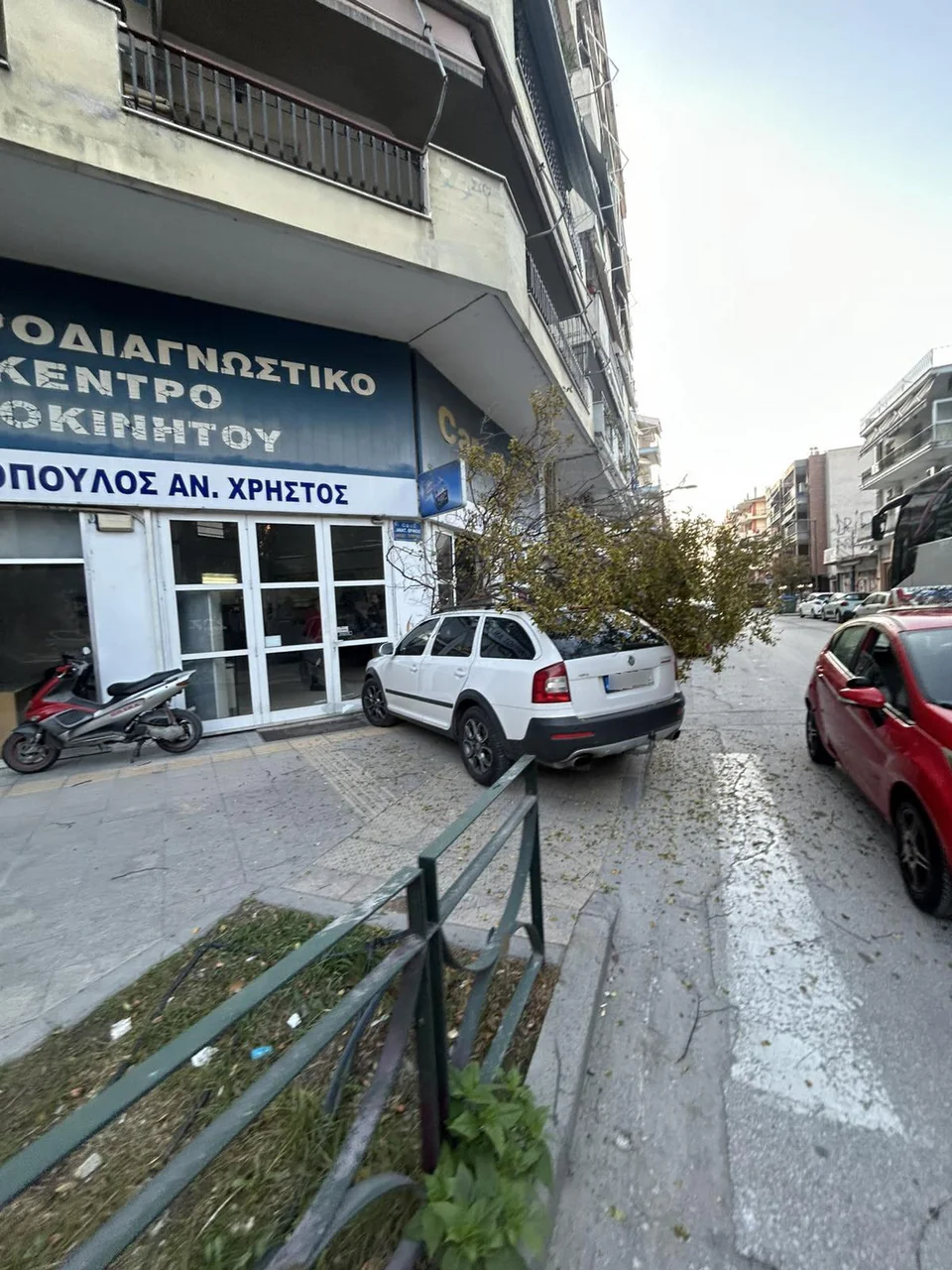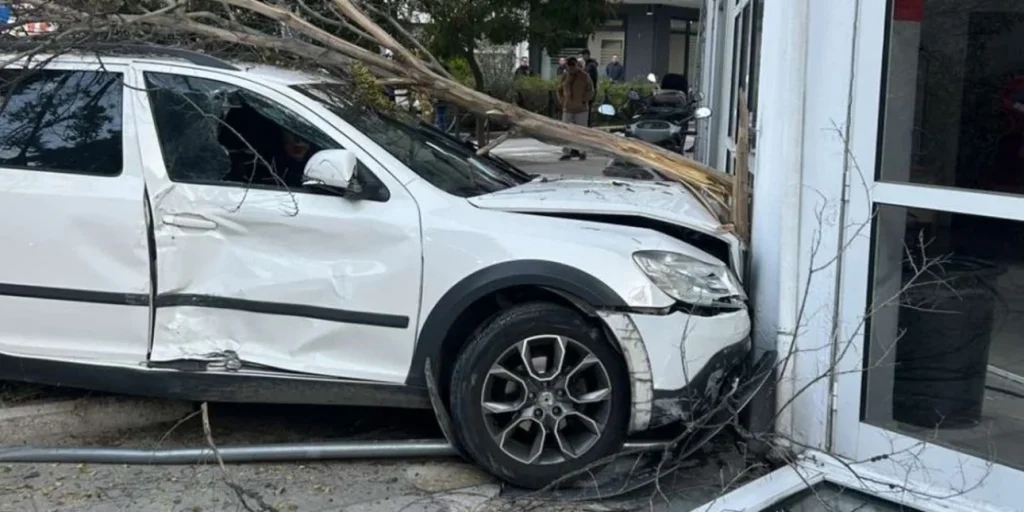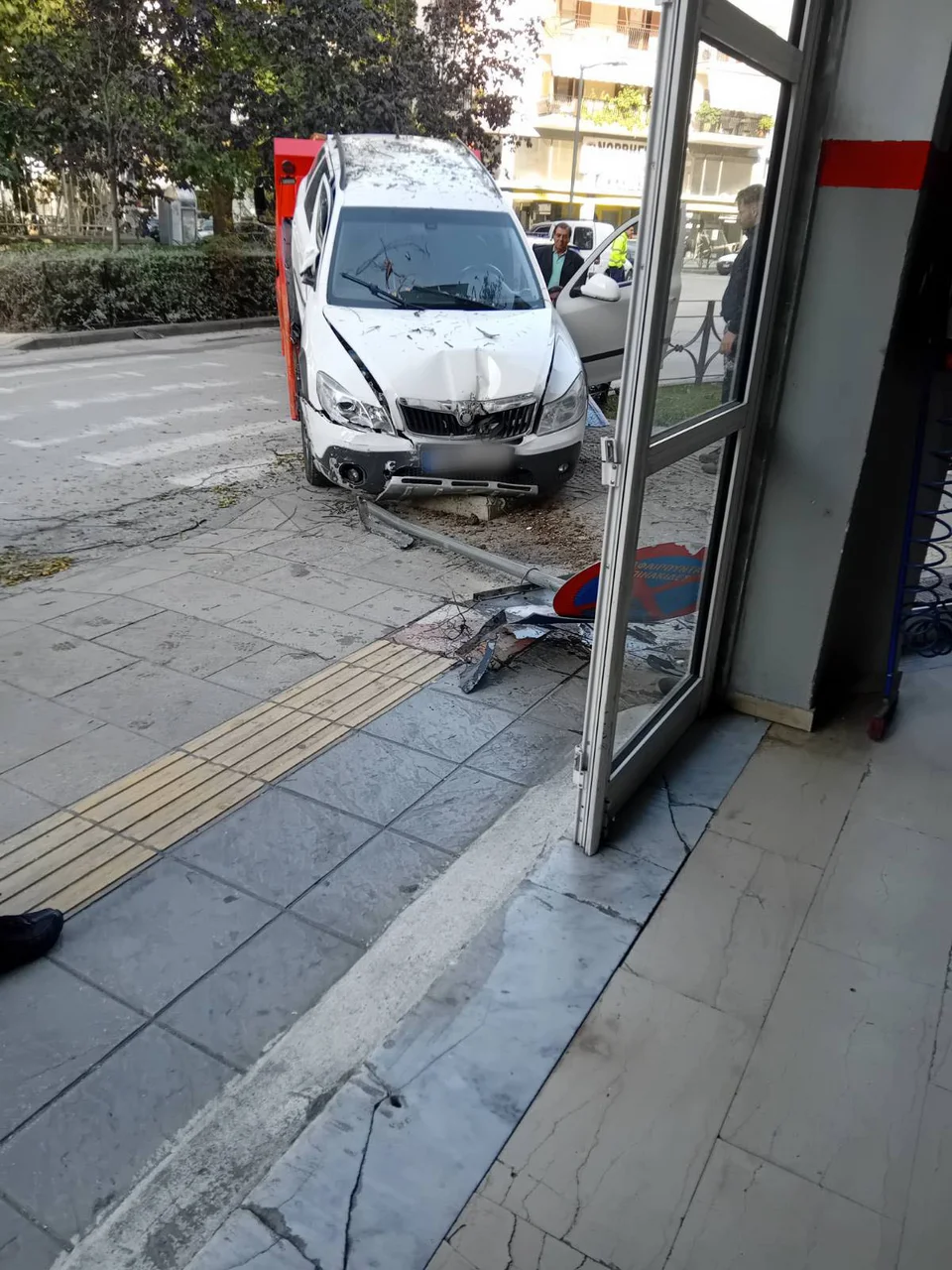 Αμέσως μετά, το αυτοκίνητο προσέκρουσε σε δέντρο και στη συνέχεια κατέληξε πάνω στη τζαμαρία συνεργείου αυτοκινήτων, προκαλώντας υλικές ζημιές.