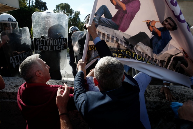 Τα μέλη της ΠΟΕΔΗΝ ζήτησαν από τους αστυνομικούς να περάσουν δύο άτομα στον περιβάλλοντα χώρο της Βουλής και να σηκώσουν το πανό, ωστόσο από την ΕΛ.ΑΣ. αρνήθηκαν, με αποτέλεσμα να προκληθεί ένταση.