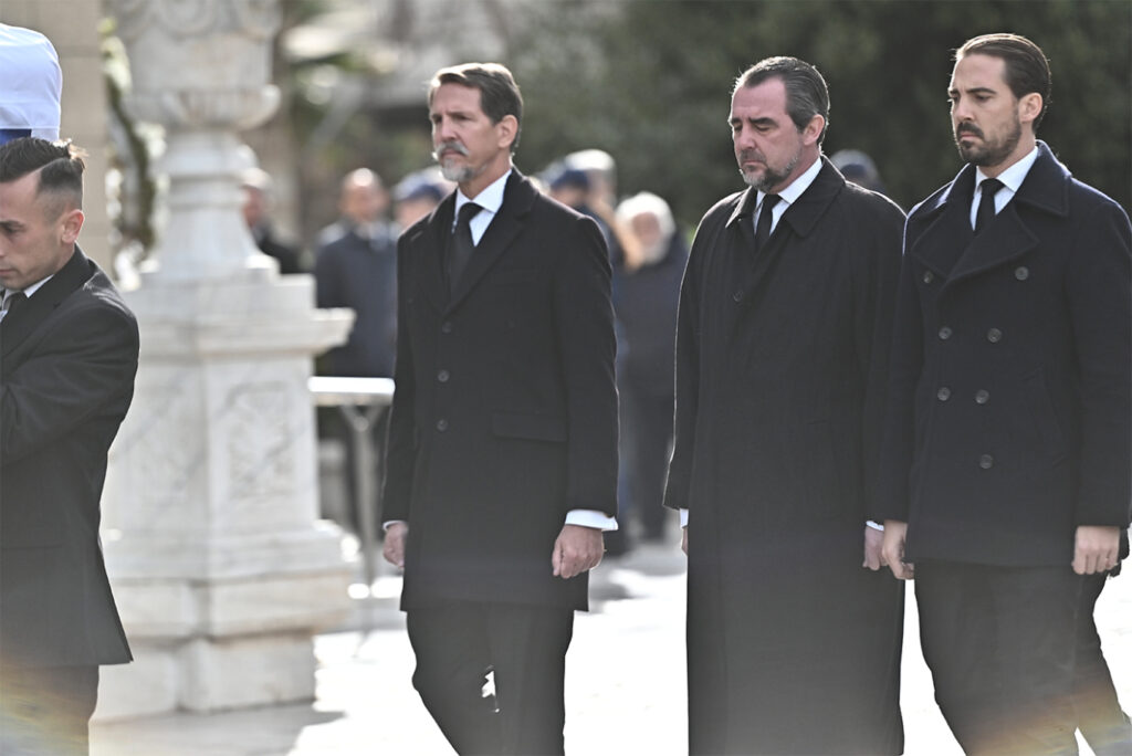 Σύσσωμη η πρώην βασιλική οικογένεια αποχαιρετά την πριγκίπισσα Ειρήνη, ενώ στο πλευρό τους βρίσκονται συγγενείς τους από τις βασιλικές οικογένειες της Ισπανίας, της Σερβίας, της Δανίας, αλλά και του Ηνωμένου Βασιλείου.