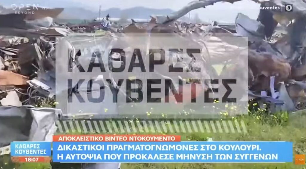Στο βιντεοληπτικό υλικό από αυτοψία δικαστικών πραγματογνωμόνων στις 5 Ιανουαρίου 2024, καταγράφεται ο τόπος και ο τρόπος που τοποθετήθηκαν τα συντρίμμια της σύγκρουσης, ο τρόπος που γίνεται η αυτοψία και τι συζητούν μεταξύ τους οι πραγματογνώμονες.