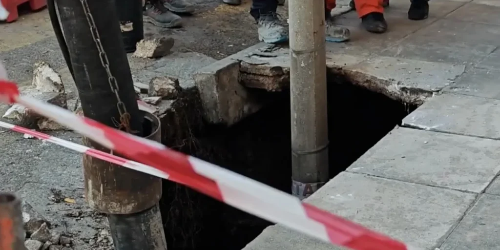 Η τρύπα έχει πέντε μέτρα εμβαδόν και σημαντικό βάθος, ενώ παρέσυρε και μια κολώνα φωτισμού.