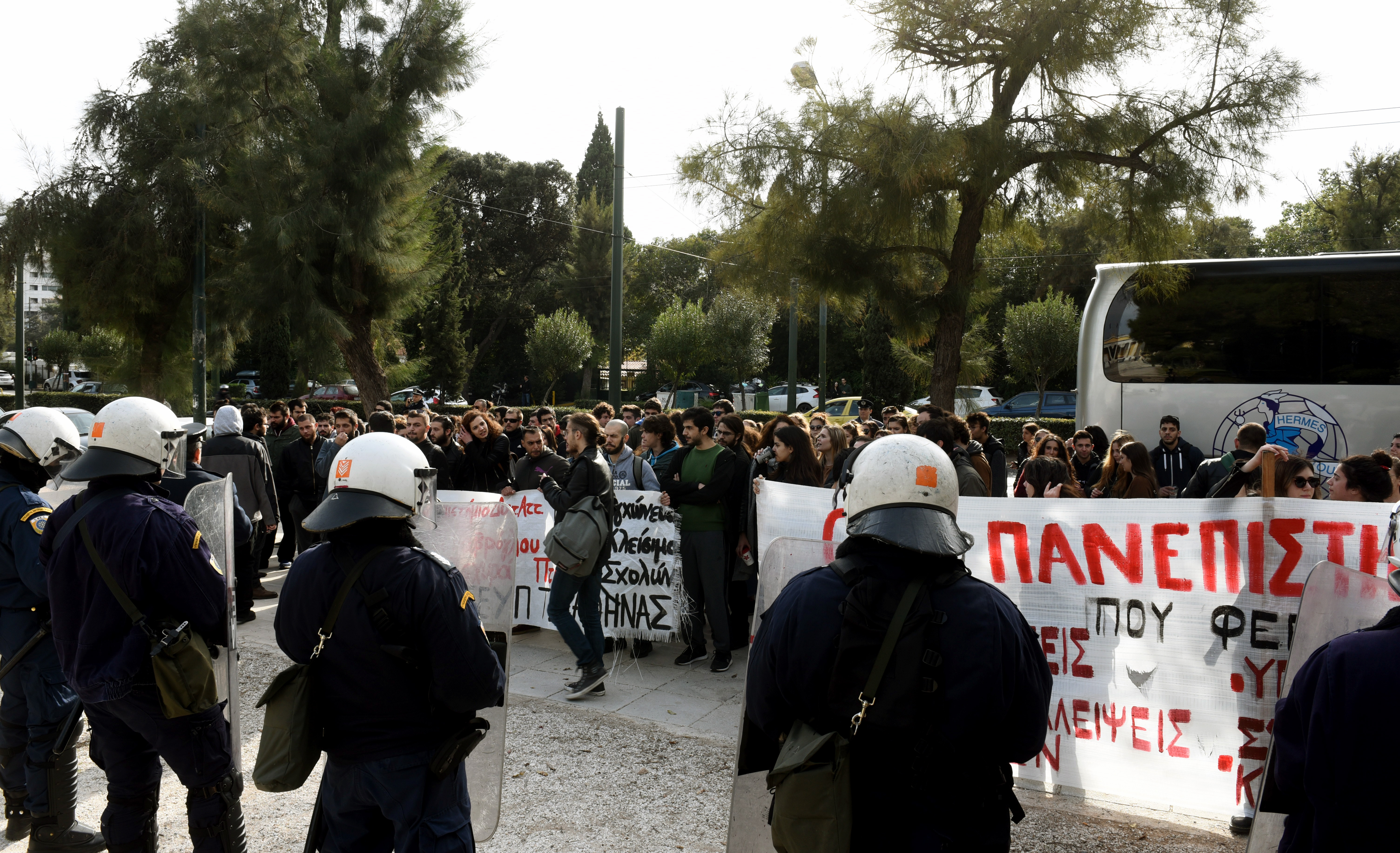 Ένταση μεταξύ ομάδας φοιτητών και των ΜΑΤ προκλήθηκε έξω από το Ζάππειο Μέγαρο, στο κέντρο της Αθήνας, όπου διεξάγεται η Σύνοδος των Πρυτάνεων τριτοβάθμιας εκπαίδευσης.