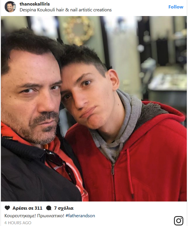 «Κουρευτήκαμε! Πρωινιάτικο», έγραψε στη λεζάντα της φωτογραφίας ο Θάνος Καλλίρης.