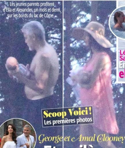 Το γαλλικό περιοδικό Voici δημοσίευσε τις φωτογραφίες στο εξώφυλλό του την Παρασκευή ισχυριζόμενο ότι είναι το πρώτο που παρουσιάζει την Έλα και τον Αλεξάντερ του ζεύγους Κλούνεϊ.