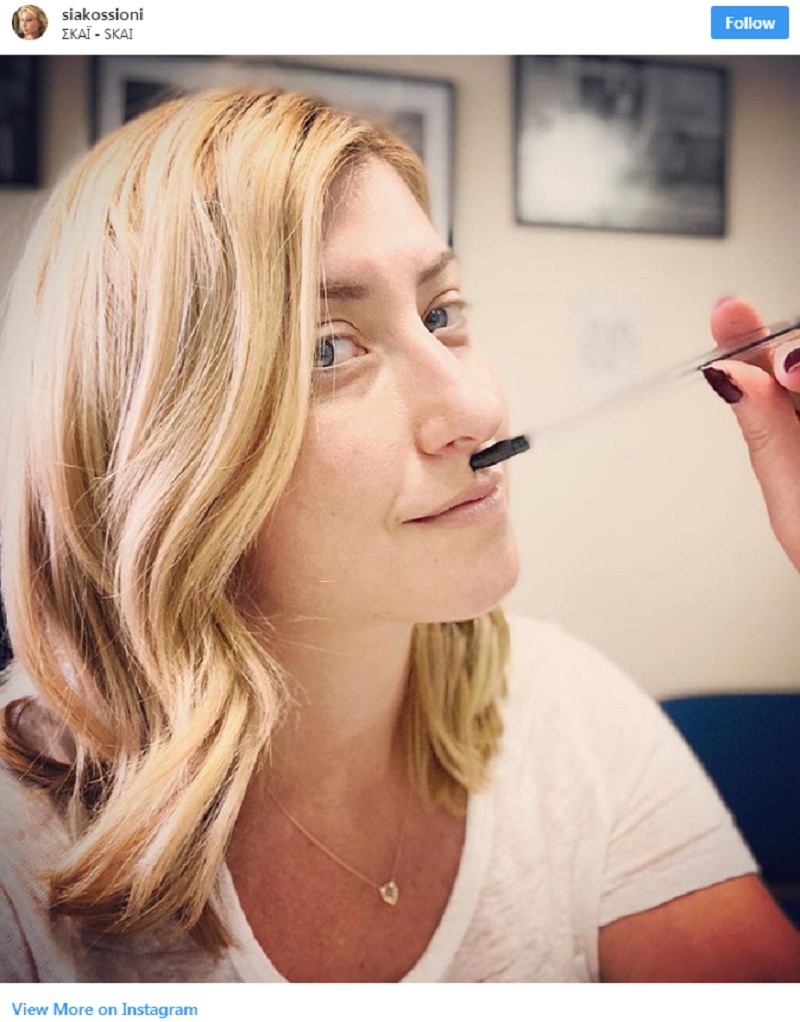 Η ίδια ανέβασε μια φωτογραφία της χωρίς μακιγιάζ και τη λεζάντα έγραψε: Σάββατο στο γραφείο! Υπέροχα! ΥΓ: Κι αποψε μαζί.