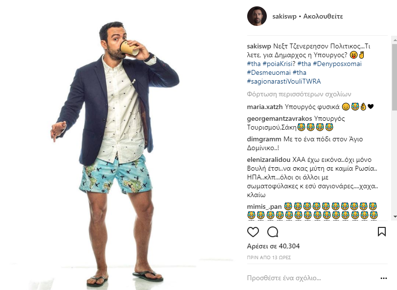 Ο Σάκης φωτογραφήθηκε με σαγιονάρες και με μαγιό και δήλωσε «Νεξτ Τζενερεησον Πολιτικος…Τι λετε, για Δημαρχος η Υπουργος;».