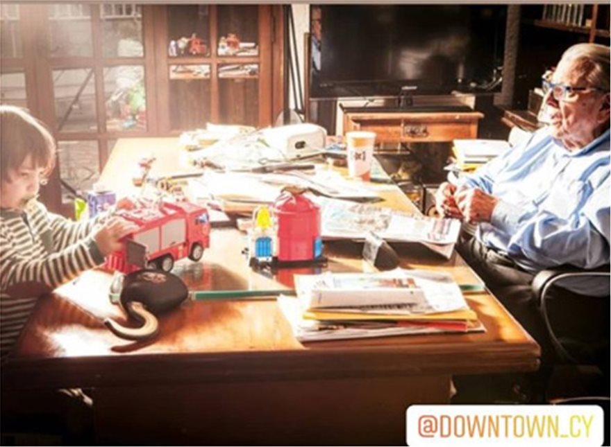Στη δεύτερη φωτογραφία ο Κώστας Βουτσάς παρακολουθεί το Φοίβο να παίζει με τα παιχνίδια του.