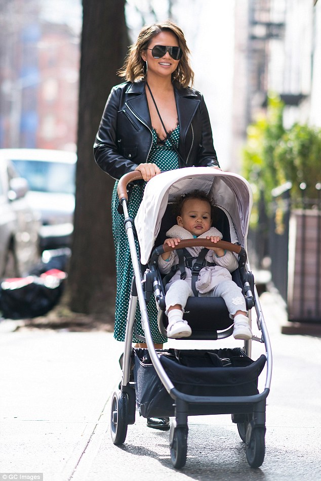 Η 32 χρονη φορούσε ένα αμάνικο πράσινο πουά φουστάνι, δερμάτινο τζάκετ και μαύρα μποτάκια. Το φουστάνι είχε μεγάλο ντεκολτέ που κάθε άλλο παρά έδειχνε να ενοχλεί την Chrissy Teigen η οποία μας έχει συνηθίσει σε πολύ πιο προκλητικές εμφανίσεις από αυτή.