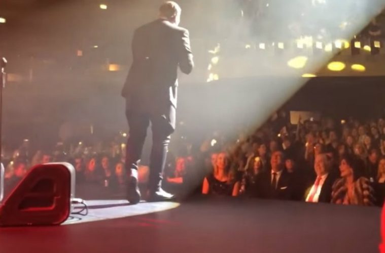 Γονάτισε στην πίστα και έδωσε ένα χειροφίλημα στην κυρία Γιάννα Αγγελοπούλου, η οποία απόλαυσε την βραδιά στο μέγιστο βαθμό. Δεν ήταν μάλιστα λίγες οι φορές που σηκώθηκε όρθια ενθουσιασμένη από το πρόγραμμα, εν αντιθέσει με τον σύζυγό της ο οποίος επέλεξε να τραβήξει κάποια βίντεο με το κινητό του τηλέφωνο. Στο τραπέζι του ζεύγους ήταν και ο Γιώργος Ντάβλας με την σύζυγό του, ενώ κάποια στιγμή ήρθε και κάθισε μαζί με το ζεύγος Αγγελόπουλου, η σύντροφος του Αντώνη Ρέμου, Υβόννη Μπόσνιακ, την οποία υποδέχθηκαν θερμά.