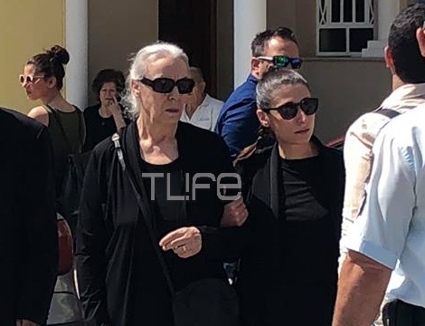 Λίγο μετά τις 11 έφθασε συντετριμμένη στην εκκλησία η επί 55 χρόνια σύντροφός του Χαρίκλεια με τη κόρη τους Κορίνα.
