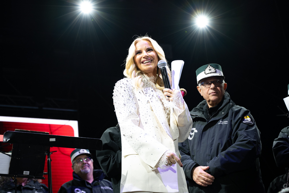 Γιορτινές μελωδίες και παραδοσιακά κάλαντα δημιούργησαν μια ζεστή, εορταστική ατμόσφαιρα, ενώ τη στιγμή που το επιβλητικό χριστουγεννιάτικο δέντρο φωτίστηκε, ο ουρανός της πόλης γέμισε με αμέτρητα πυροτεχνήματα, δημιουργώντας ένα εντυπωσιακό θέαμα.