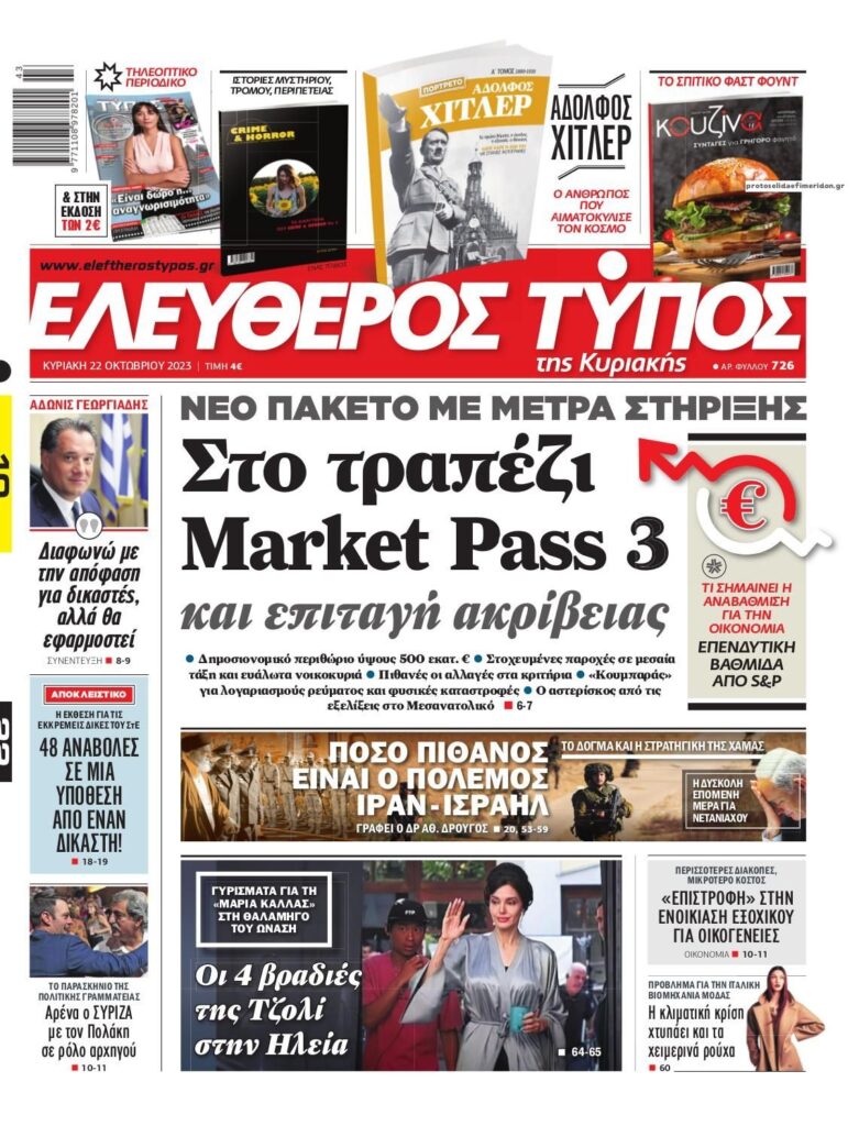 3 top δεξιά, MEDIA Διαβάστε τα πρωτοσέλιδα των εφημερίδων της Κυριακής 22 Οκτωβρίου, 2023, 10:47 πμ22 Οκτωβρίου, 2023 0 Facebook share Twitter Διαβάστε τα πρωτοσέλιδα των εφημερίδων της Κυριακής