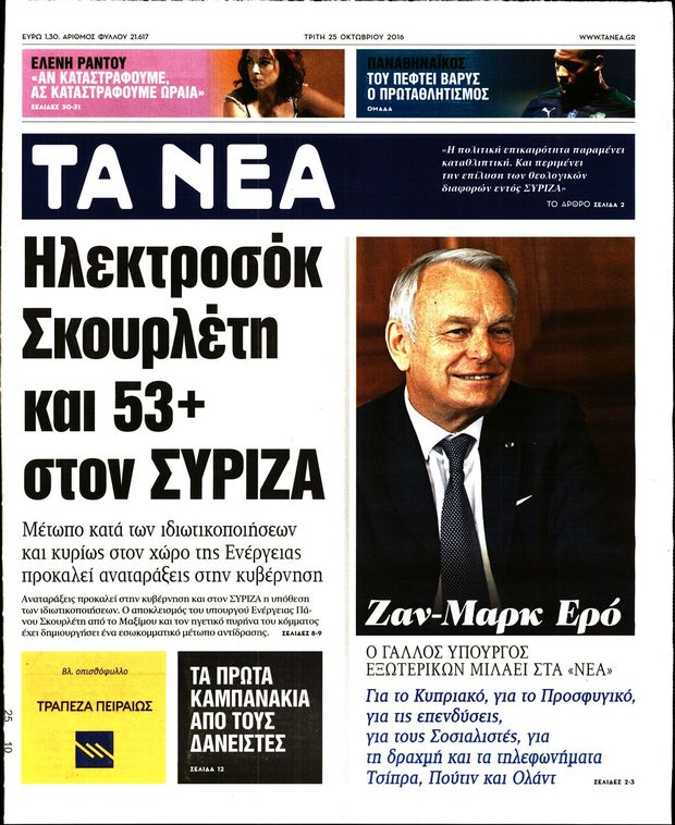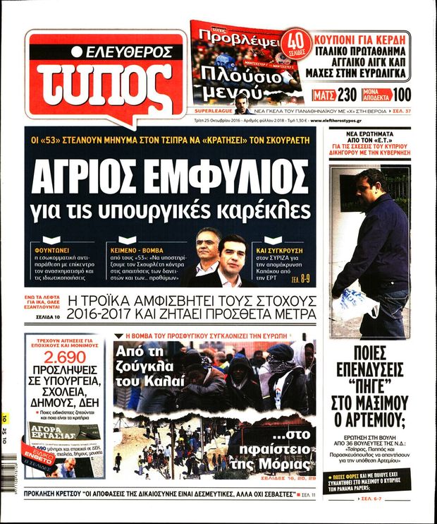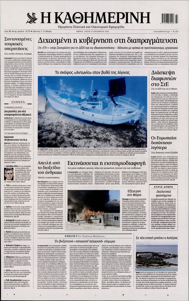 MEDIA Τα πρωτοσέλιδα των εφημερίδων 25 Οκτωβρίου, 2016, 8:18 πμ25 Οκτωβρίου, 2016 0 Facebook share Twitter